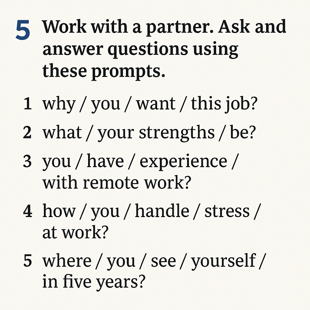 - Consider the CEFR level of the students and tailor the instructions accordingly. Don’t use language which is more difficult than the level you are writing for.