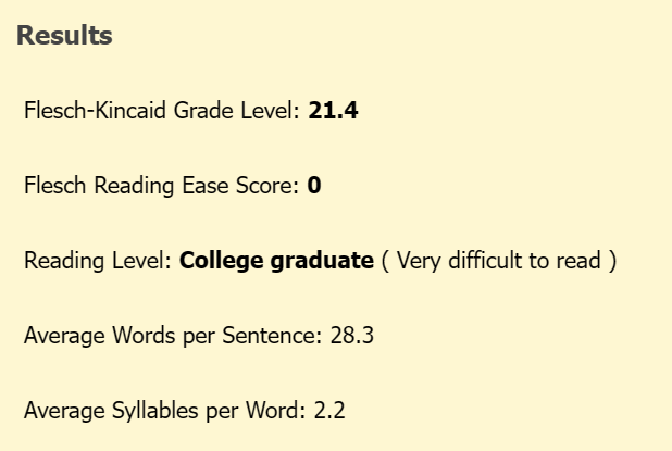 Flesch Readibility Calculator: https://goodcalculators.com/flesch-kincaid-calculator